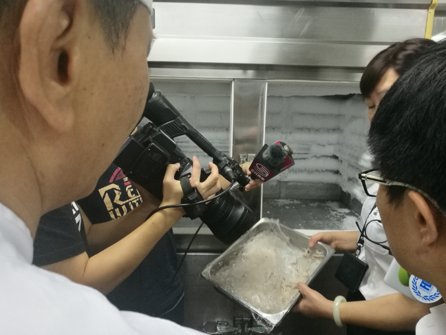 快检人员抽取了君悦酒店职工食堂的原材料猪肉、羊肉、鸡肉、水果、蔬菜,彭年酒店职工食堂的鸡蛋、蔬菜进行快检,共检测19批次样品,检验结果均为阴性,快检结果为合格。同时,果冻传媒